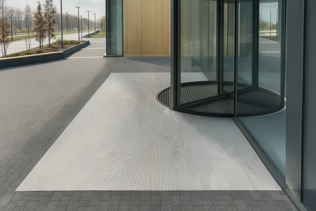 Dla budynków użyteczności publicznej, firm, galerii handlowych czy obiektów premium proponujemy wycieraczki systemowe, wykonane na dokładny wymiar i zgodne z wymaganiami obiektu.